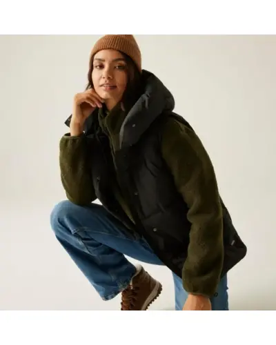 Női steppelt mellény, Női pehelykönnyû, vízlepergető kapucnis mellény meleg és stílusos rétegezéshez, Ez a peached felületû, vízlepergető mellény kényelmes meleget és letisztult megjelenést kínál, ideális hûvösebb időjárásra vagy változékony napokra. A Warmloft szintetikus pehelytöltet könnyû, mégis hatékony szigetelést biztosít, miközben a kapucni extra védelmet nyújt a szél és az enyhe eső ellen., Anyag: 100% poliészter, vízlepergető peached felület 75 g/m?, Bélése: 100% poliészter taft, Szigetelés: Warmloft újrahasznosított szintetikus pehely 200 g/m?, Grown on (fix) kapucni, 2 alsó, patenttal záródó zseb, Újrahasznosított anyagból készült fenntartható választás, Ajánlott: hûvösebb időjáráshoz, városi sétákhoz, kirándulásokhoz, kabát alá vagy önálló rétegként, Könnyû, meleg, környezettudatos ideális választás a kényelmes, stílusos mindennapokra.