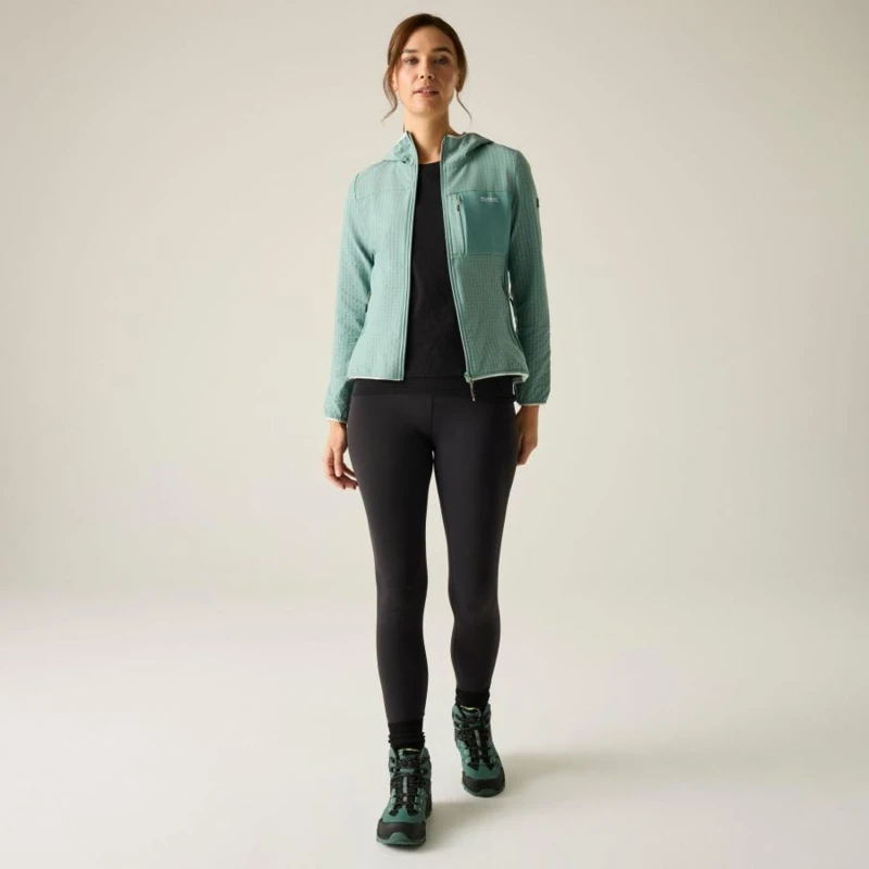 Női polár felső, Prémium női technikai polár felső – grid brushed back fleece, Extol Stretch panelek, Reach Technology, Ez a női technikai polár felső 90% poliészter / 10% elasztán woven fleece anyagból készült, 200 g/m? súlyban, rácsszerkezetû, bolyhozott hátoldallal a hatékony hőszigetelés érdekében. Az Extol Stretch panelek tovább növelik a rugalmasságot, míg a Reach Technology hónaljbetét maximális mozgástartományt és szabad karmozgást biztosít aktív használat során., Főbb jellemzők:, 90% poliészter / 10% elasztán woven fleece grid bolyhozott hátoldallal, 200 g/m?, Extol Stretch panelbetétek, 90% poliészter / 10% elasztán, Reach Technology hónaljbetét a maximális mozgásszabadságért, Beépített kapucni, 2 alsó cipzáras zseb, 1 cipzáras ujjzseb, Rugalmas szegély a kapucnin, a mandzsettán és az alsó részen, Ajánlott: Női technikai polár felsőként ideális túrázáshoz, trekkinghez, kiránduláshoz és aktív szabadtéri programokhoz. Kiváló középréteg hûvösebb időben, illetve önálló rétegként átmeneti időszakban., Fenntarthatóság: A tartós, rugalmas poliészter alapanyag hosszú élettartamot biztosít, csökkentve a gyakori ruhacsere szükségességét. A minőségi konstrukció több szezonon át megbízható teljesítményt nyújt.