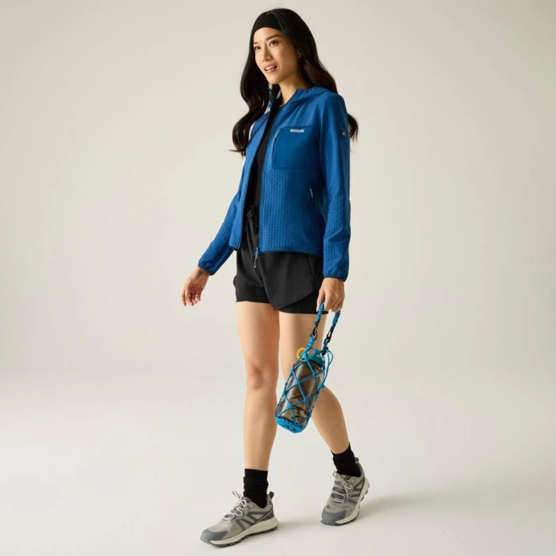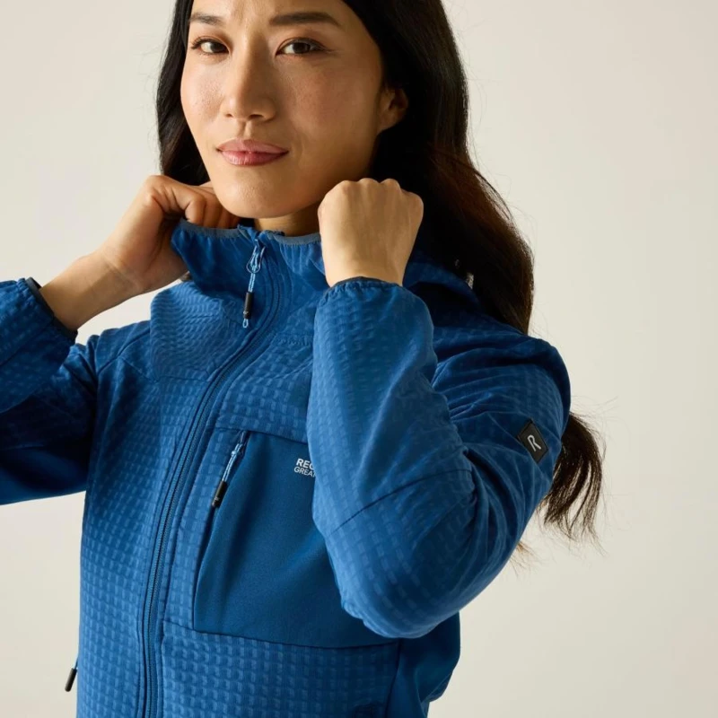 Női polár felső, Prémium női technikai polár felső – grid brushed back fleece, Extol Stretch panelek, Reach Technology, Ez a női technikai polár felső 90% poliészter / 10% elasztán woven fleece anyagból készült, 200 g/m? súlyban, rácsszerkezetû, bolyhozott hátoldallal a hatékony hőszigetelés érdekében. Az Extol Stretch panelek tovább növelik a rugalmasságot, míg a Reach Technology hónaljbetét maximális mozgástartományt és szabad karmozgást biztosít aktív használat során., Főbb jellemzők:, 90% poliészter / 10% elasztán woven fleece grid bolyhozott hátoldallal, 200 g/m?, Extol Stretch panelbetétek, 90% poliészter / 10% elasztán, Reach Technology hónaljbetét a maximális mozgásszabadságért, Beépített kapucni, 2 alsó cipzáras zseb, 1 cipzáras ujjzseb, Rugalmas szegély a kapucnin, a mandzsettán és az alsó részen, Ajánlott: Női technikai polár felsőként ideális túrázáshoz, trekkinghez, kiránduláshoz és aktív szabadtéri programokhoz. Kiváló középréteg hûvösebb időben, illetve önálló rétegként átmeneti időszakban., Fenntarthatóság: A tartós, rugalmas poliészter alapanyag hosszú élettartamot biztosít, csökkentve a gyakori ruhacsere szükségességét. A minőségi konstrukció több szezonon át megbízható teljesítményt nyújt.