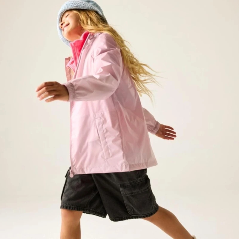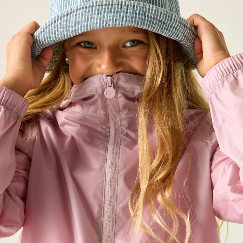 gyerek esőkabát 5.000 mm, Isolite - Könnyû, 5.000 mm-ig vízálló és lélegző poliamid anyag, Lélegző érték: 5.000g/m2/nap, Tartós víztaszító felület, Ragasztott varrások, béleltlen, Gumis szegélyû, nem-levehető kapucni, Két zseb az alján, Elcsomagolható