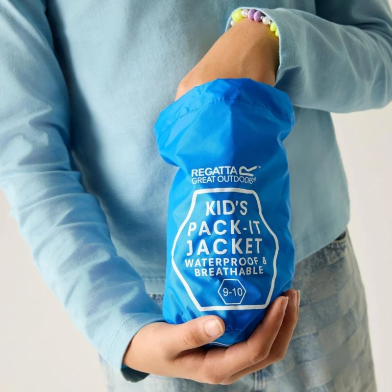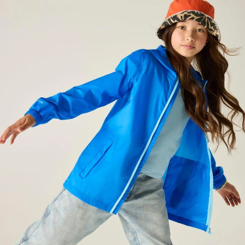 gyerek esőkabát 5.000 mm, Isolite - Könnyû, 5.000 mm-ig vízálló és lélegző poliamid anyag, Lélegző érték: 5.000g/m2/nap, Tartós víztaszító felület, Ragasztott varrások, béleltlen, Gumis szegélyû, nem-levehető kapucni, Két zseb az alján, Elcsomagolható