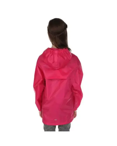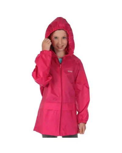 Gyerek esőkabát, Tartós vízlepergető felület, Ragasztott varratok a teljes vízállóság érdekében, Bélés nélküli, fix kapucni, Elasztikus mandzsetta, 2 alsó zseb, Állítható húzózsinóros szegély