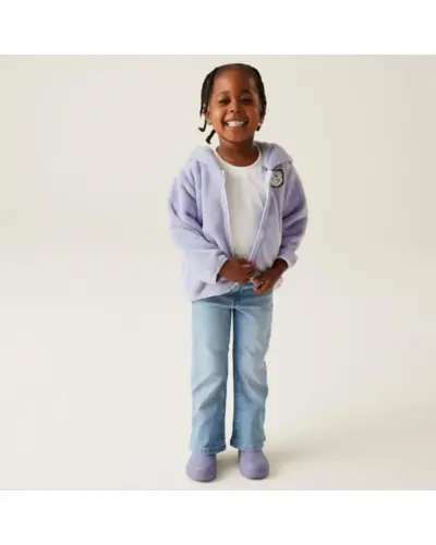 Gyerek vastag polár pulóver, Anyag: 230g/m? súlyú, 100% poliészter rövid szálú, bolyhos polár anyag, amely puha és kényelmes viseletet biztosít., Kapucni: Beépített kapucni állatfigura fülekkel, amelyek játékos és aranyos megjelenést kölcsönöznek a kabátnak., Díszítés: Hímzett, applikált állatkarakter melljelvény, amely vidám és vonzó dizájnelemet ad a kabáthoz., Rugalmas szegélyek: Rugalmas szegélyek a mandzsettáknál és a kabát szegélyénél, amelyek biztosítják a kényelmes és szoros illeszkedést., Ez a kabát különösen alkalmas kisgyermekek számára, mivel a puha, bolyhos polár anyag melegséget és kényelmet biztosít. Az állatfülekkel ellátott kapucni és a hímzett állatkarakteres díszítés játékos, barátságos megjelenést ad, amely különösen vonzó a gyerekek számára. A rugalmas szegélyek pedig biztosítják, hogy a kabát jól illeszkedjen és védje a viselőjét a hidegtől.