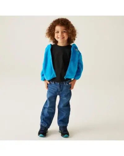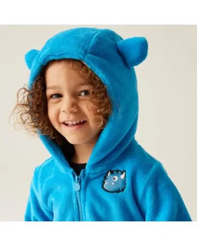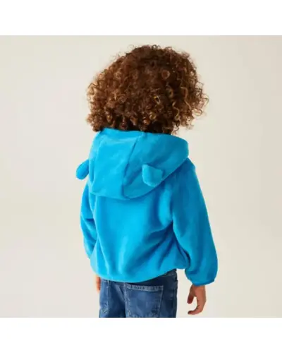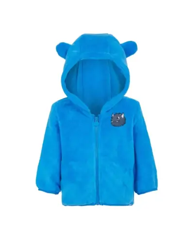 Gyerek vastag polár pulóver, Anyag: 230g/m? súlyú, 100% poliészter rövid szálú, bolyhos polár anyag, amely puha és kényelmes viseletet biztosít., Kapucni: Beépített kapucni állatfigura fülekkel, amelyek játékos és aranyos megjelenést kölcsönöznek a kabátnak., Díszítés: Hímzett, applikált állatkarakter melljelvény, amely vidám és vonzó dizájnelemet ad a kabáthoz., Rugalmas szegélyek: Rugalmas szegélyek a mandzsettáknál és a kabát szegélyénél, amelyek biztosítják a kényelmes és szoros illeszkedést., Ez a kabát különösen alkalmas kisgyermekek számára, mivel a puha, bolyhos polár anyag melegséget és kényelmet biztosít. Az állatfülekkel ellátott kapucni és a hímzett állatkarakteres díszítés játékos, barátságos megjelenést ad, amely különösen vonzó a gyerekek számára. A rugalmas szegélyek pedig biztosítják, hogy a kabát jól illeszkedjen és védje a viselőjét a hidegtől.