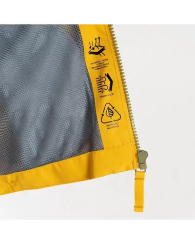 Gyerek esőkabát, Vízálló és légáteresztő technikai kabát újrahasznosított anyagból, ARED 15/15 újrahasznosított poliészter twill anyag vízálló, légáteresztő és rugalmas, Teljesen ragasztott varrások és vízlepergető bevonat az extra védelemért, PFC, PFOA, PFOS mentes környezetbarát kialakítás, Fényvisszaverő részletek a jobb láthatóságért, Magas galléros, beépített technikai kapucni elasztikus illeszkedéssel, 1 cipzáras mellzseb, 2 cipzáras alsó zseb és belső biztonsági zseb, Állítható tépőzáras mandzsetta és húzózsinóros szegély (7 éves kortól), Részben hálós, részben újrahasznosított poliészter taft bélés, Ideális túrázáshoz, aktív szabadtéri sportokhoz és mindennapi viseletre!