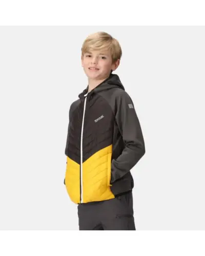 Gyerek hybrid felső, steppelt anyag a mellső és hátrészen, Tartós vízlepergető felület, Extol Stretch panelbetétek - 90% poliészter/10% elasztán, Újrahasznosított szintetikus Warmloft szigetelés, Könnyû töltet, Könnyen összenyomható, Stretch kötés a kapucni nyílásán, mandzsettáján és szegélyén, 2 cipzáras alsó zseb