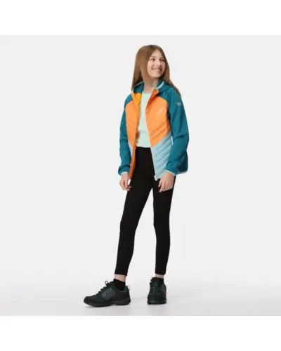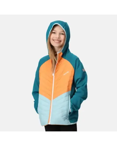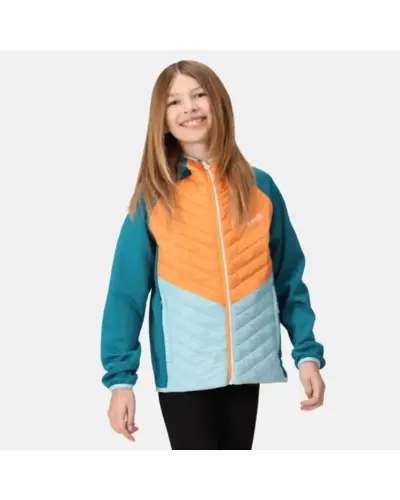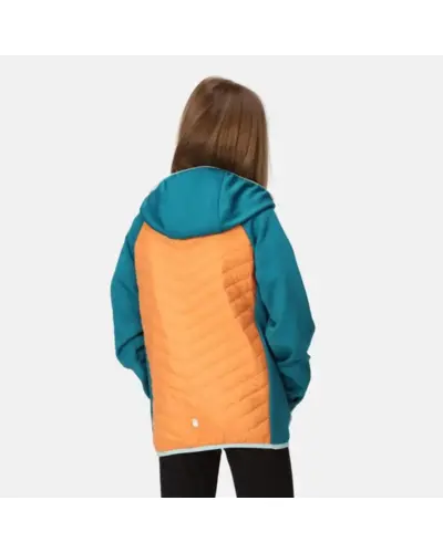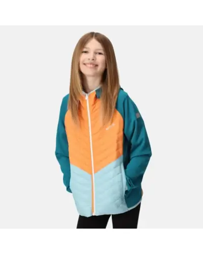 Gyerek hybrid felső, steppelt anyag a mellső és hátrészen, Tartós vízlepergető felület, Extol Stretch panelbetétek - 90% poliészter/10% elasztán, Újrahasznosított szintetikus Warmloft szigetelés, Könnyû töltet, Könnyen összenyomható, Stretch kötés a kapucni nyílásán, mandzsettáján és szegélyén, 2 cipzáras alsó zseb