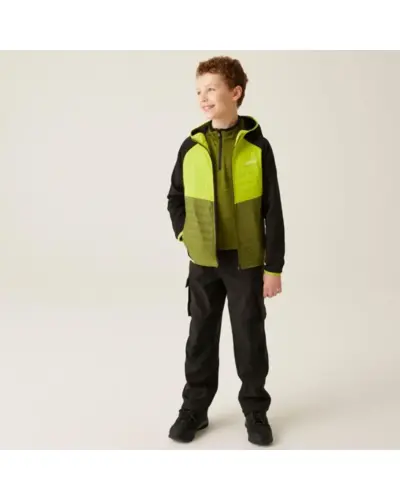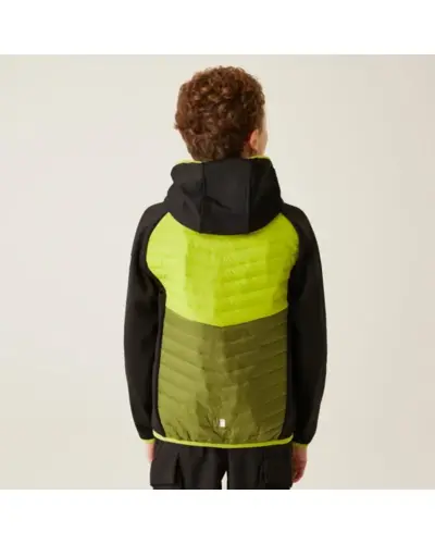 Gyerek hybrid felső, Poliamid panelek, Tartós vízlepergető felület, Extol Stretch panelbetétek – újrahasznosított 90% poliészter/10% elasztán, Újrahasznosított szintetikus Warmloft szigetelés, Könnyû töltet, Könnyen összenyomható, rugalmas szegélyek, Cipzáras védő a kényelmes viseletért, 2 cipzáras alsó zseb, Fényvisszaverő díszítés, Nyomtatott névcímke (8 éves korig)