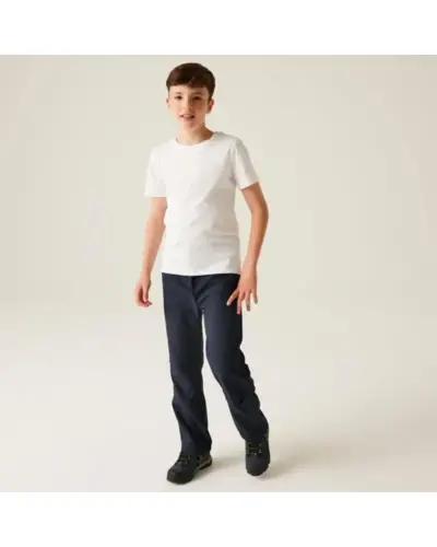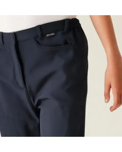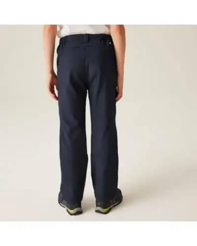 Gyerek softshell nadrág, Anyag: Újrahasznosított, meleg hátoldalú, szövött, rugalmas Softshell anyag, 96% poliészter és 4% elasztán összetételben. Ez az anyag rugalmasságot és kényelmet biztosít, miközben meleget ad., Térd erősítések: 100% poliészter ripstop anyag térderősítések, amelyek extra tartósságot és kopásállóságot biztosítanak a térd környékén., Vízlepergető felület: Tartós vízlepergető bevonattal ellátott, amely megvédi a nadrágot a nedvességtől és az esőtől., Szélállóság: Az anyag szélálló tulajdonságokkal rendelkezik, amely segít megvédeni a viselőt a hideg szél ellen., Derék: Részben elasztikus derék, amely kényelmes és rugalmas illeszkedést biztosít., Zsebek: Több zsebbel ellátott, amelyek praktikus tárolási lehetőséget biztosítanak különböző tárgyak számára., Ez a nadrág ideális választás a szabadtéri tevékenységekhez, mivel meleg, szélálló és vízlepergető, emellett tartós és praktikus zsebekkel rendelkezik. A részben elasztikus derék és a rugalmas Softshell anyag kényelmes viseletet biztosít, míg az újrahasznosított anyagok használata környezettudatos döntést képvisel.