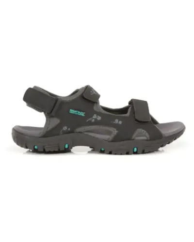 női szandál, Mintás poliuretán bőr felsőrész, Spandex bélés az extra kényelemért , Tépőzárral állítható pántok a lábfejen és a sarokon, Stabilizáló pántkialakítás a lábfejen, anyag borítású, tömörített EVA ütéscsillapító középtalp réteg, Könnyû, csúszásmentes, tartós TPR talp