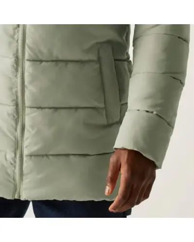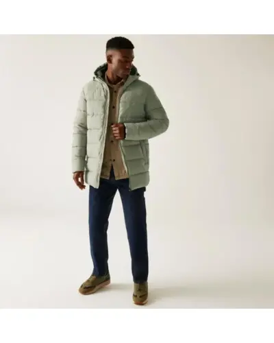 Férfi steppelt kabát, Ez az újrahasznosított anyagokból készült kabát ideális választás hideg és nedves , időjárási körülményekhez., Anyag: Újrahasznosított 100% poliészter vízlepergető mikro poplin anyag., Felületkezelés: Tartós vízlepergető bevonat., Szigetelés: Közepes súlyú Feather Free prémium újrahasznosított szintetikus pehelyszigetelés., Bélés: 100% poliészter taft bélés., Belső cipzáras biztonsági zseb, 2 alsó cipzáras zseb, Kapucni: Integrált kapucni állítókkal., Mandzsetták: Belső viharmandzsetták a jobb illeszkedés és hőmegtartás érdekében., Ez a kabát tökéletes választás azok számára, akik meleg, kényelmes és környezetbarát viseletet , keresnek a hideg, szeles és nedves időjárásban történő szabadtéri tevékenységekhez.