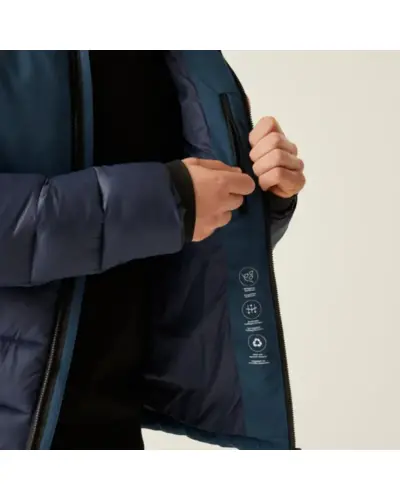 Férfi vastagabb bélelt kabát , Ez az újrahasznosított 100% poliészterből készült, vízlepergető és stretch anyagú kabát ideális , választás a hideg és szeles időjárási körülményekhez. , Újrahasznosított 100% poliészter vízlepergető, stretch anyag., 100% poliészter vízlepergető mikro poplin anyag., Membrán: Vízálló és szélálló membrán anyag., Felületkezelés: Tartós vízlepergető bevonat., Szigetelés: Közepes súlyú Feather Free prémium újrahasznosított szintetikus pehelyszigetelés., Bélés: Poliamid bélés., Belső cipzáras biztonsági zseb, Cipzáras ujjzseb, 2 alsó cipzáras zseb, Kapucni: Integrált kapucni állítókkal., Mandzsetták: Belső Lycra mandzsetták., Állíthatóság: Állítható húzózsinóros szegély., Fenntarthatóság: Újrahasznosított anyagokból készült., Ez a kabát ideális választás bárki számára, aki meleg, kényelmes és környezetbarát megoldást , keres a hideg és esős időjárásban történő szabadtéri tevékenységekhez.