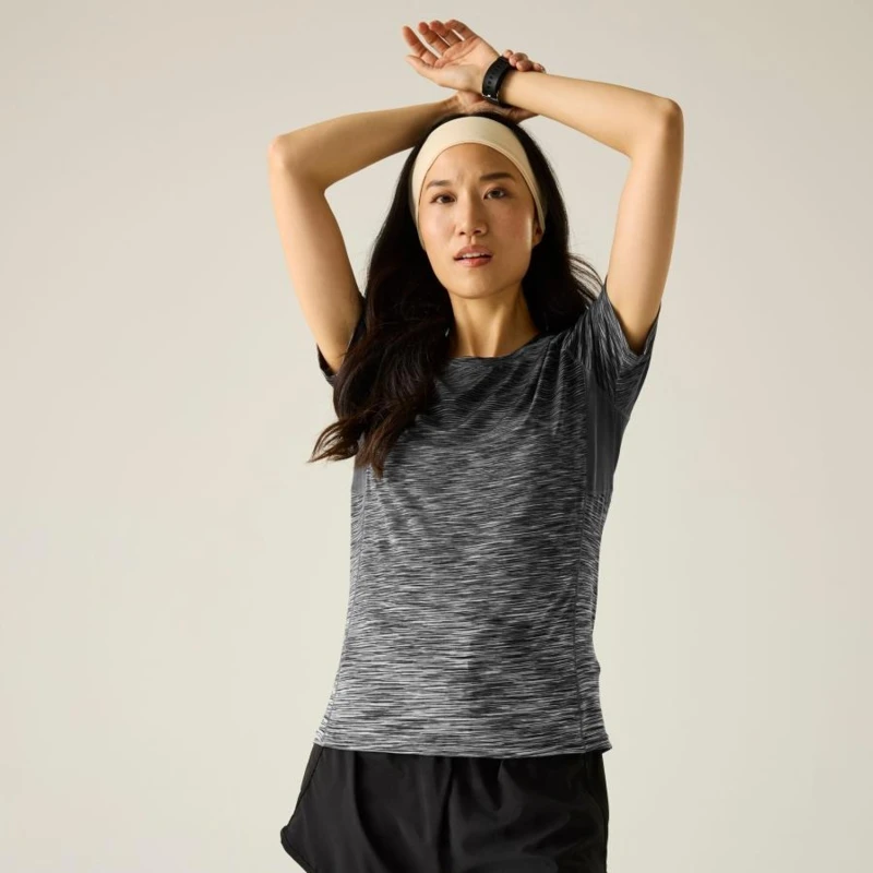Női gyorsan száradó póló, 90% poliészter/10% elasztán Jersey anyag, 100% poliészter , Jó nedvszívó, gyorsan száradó anyag, hamar elvezeti a nedvességet a testről