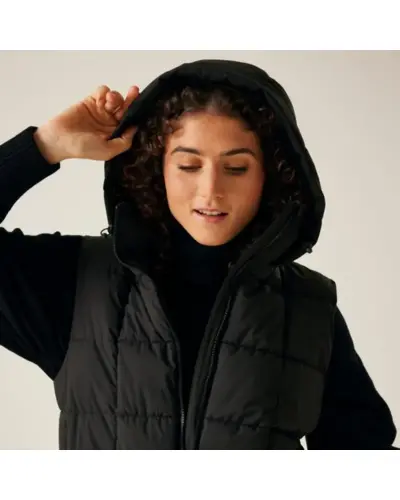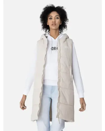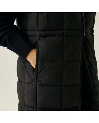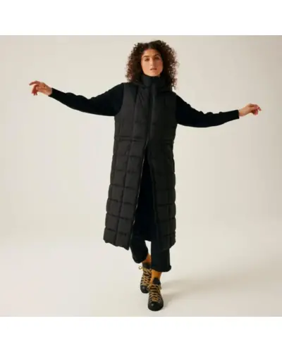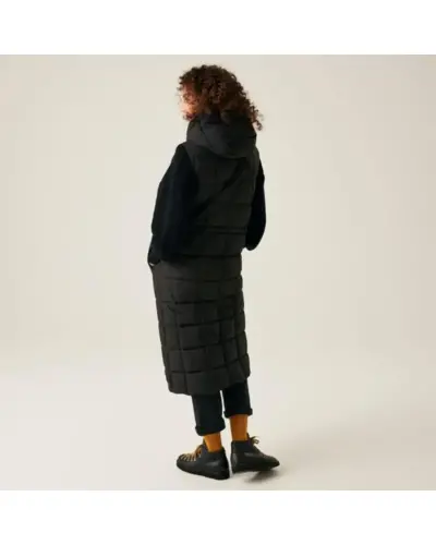 Női steppelt mellény, Újrahasznosított poliészter vízlepergető, selymes tapintású anyag, Tartós vízlepergető bevonat, Közepes súlyú, pehelymentes, prémium újrahasznosított szintetikus bélés, 100% poliészter taft bélés, Luxus mûszőrme bélés a kapucniban, Belső cipzáras biztonsági zseb, Hosszabb fazon, 2 alsó cipzáras zseb, Ez a mellény ideális választás azoknak, akik meleg, kényelmes és környezetbarát téli viseletet keresnek. Az újrahasznosított poliészter anyag selymes tapintású és vízlepergető, amely hatékonyan véd a nedvességtől. A közepes súlyú, prémium minőségû, pehelymentes szintetikus bélés biztosítja a meleget, anélkül hogy a kabát nehéz lenne. A kapucni luxus mûszőrme bélése extra kényelmet és melegséget nyújt. A kabát praktikus részletei közé tartozik a belső cipzáras biztonsági zseb és a két alsó cipzáras zseb, amelyek biztonságos tárolási lehetőséget kínálnak. A hosszabb fazon extra védelmet nyújt a hideg ellen, és az egész kabát újrahasznosított anyagokból készült, így környezettudatos választás.