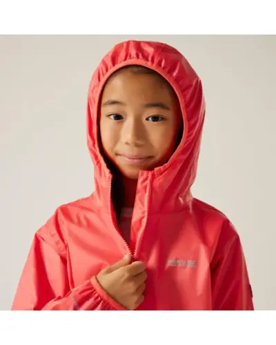 Gyerek esőkabát, Vízálló, lélegző Isolite 5.000 mm könnyû polyamid anyga, Légáteresztő képesség: 5000 g/m2/24 óra, hosszantartó vízlepergető bevonat, ragasztott varrások, hálós bélés, fix kapucni hálós béléssel, 2 cipzáras zseb, önmagába elcsomagolható, rugalmas szélû kapucni, mandzsetta és szegély