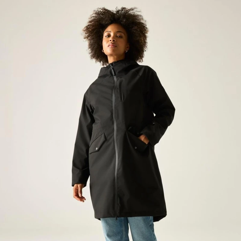 Női esőkabát 15000 mm, Prémium női vízálló technikai kabát ISOTEX 20000 stretch, 20 000 g/m?/24h légáteresztés, 165 g/m?, Ez a női technikai kabát vízálló és légáteresztő ISOTEX 20000 100% poliészter stretch anyagból készült, 165 g/m? súlyban. A kiemelkedő, 20 000 g/m?/24 óra légáteresztési teljesítmény intenzív használat során is hatékony párakezelést biztosít. A tartós vízlepergető bevonat és a ragasztott varratok teljes körû vízálló védelmet nyújtanak, míg a zónázott bélésrendszer fokozza a komfortot és a funkcionalitást., Főbb jellemzők:, Vízálló, légáteresztő ISOTEX 20000 100% poliészter stretch anyag, 165 g/m?, Légáteresztési érték: 20 000 g/m?/24 óra, Tartós vízlepergető bevonat, Ragasztott varratok a teljes vízálló védelemért, 100% poliészter hálós bélés a felsőtesten és a kapucniban, 100% poliészter taft bélés az alsó testen, Belső biztonsági zseb, Beépített kapucni rejtett állítókkal, 1 cipzáras mellzseb, 2 alsó zseb márkázott patentos záródással, Állítható, gumizsinóros derékrész, Ajánlott: Női vízálló túrakabátként ideális túrázáshoz, trekkinghez, kiránduláshoz és aktív szabadtéri programokhoz esős, szeles időjárási körülmények között. Kiváló választás, ha fontos a magas vízállóság, a légáteresztés és a rugalmas mozgásszabadság., Fenntarthatóság: A strapabíró poliészter alapanyag hosszú élettartamot biztosít, csökkentve a gyakori ruhacsere szükségességét. A minőségi konstrukció több szezonon át megbízható teljesítményt nyújt.