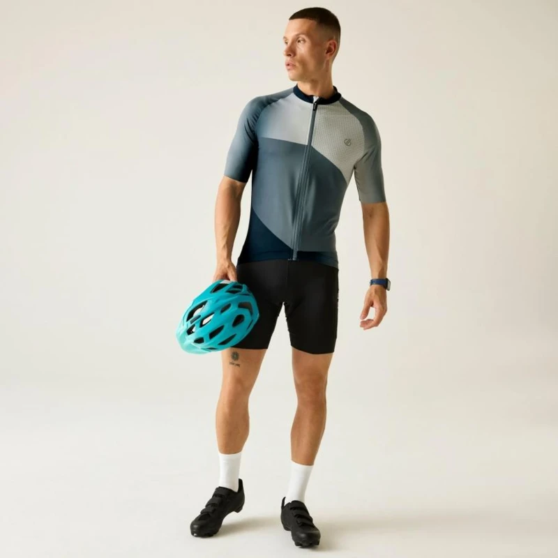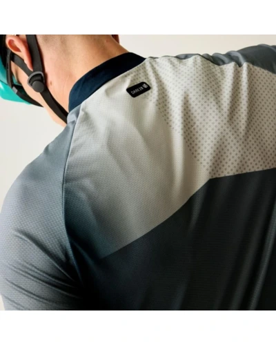 Férfi kerékpáros mez, Prémium férfi kerékpáros mez Ride Fit Pro, újrahasznosított stretch anyag, UPF 50+, Ez a férfi kerékpáros mez Ride Fit Pro szabással készült, amely fokozott aerodinamikát biztosít kerékpáros testhelyzetben, minimalizálva a felesleges anyagtömeget a maximális teljesítmény és komfort érdekében. A 93% újrahasznosított poliészter / 7% elasztán alapanyag, valamint a 90% újrahasznosított poliészter / 10% elasztán panelek kiváló rugalmasságot és testkövető illeszkedést biztosítanak. A cool & dry technológia UV-védelemmel, vegyszermentes nedvességelvezetéssel és antibakteriális kezeléssel segít száraz, friss érzetet fenntartani intenzív edzés során is., Főbb jellemzők:, Ride Fit Pro aerodinamikus szabás kerékpáros testhelyzethez optimalizálva, 93% újrahasznosított poliészter / 7% elasztán alapanyag, 90% újrahasznosított poliészter / 10% elasztán panelek, Cool & dry technológia UV-védelemmel, nedvességelvezetéssel és antibakteriális kezeléssel, UPF 50+ UV-védelem, Légáteresztő panelek az ujjakon és a hátrészen, Teljes hosszúságú elülső szellőző cipzár autolock húzóval és belső takarással, Hosszított, ívelt, részben elasztikus alsó szegély, Elasztikus, csúszásgátlós alsó szegély a stabil illeszkedésért, Lézervágott ujjvégek, Sublimációs nyomott grafika, Hátsó, háromrekeszes zsebkialakítás cipzáras biztonsági zsebbel, Fényvisszaverő részletek a fokozott láthatóságért, Ajánlott: Férfi kerékpáros mezként ideális országúti és gravel kerékpározáshoz, edzésekhez és versenyzéshez, ahol kiemelten fontos az aerodinamika, a légáteresztés és a stabil illeszkedés., Fenntarthatóság: A magas arányban újrahasznosított poliészter alapanyag csökkenti a környezeti terhelést, miközben tartós, technikai teljesítményt biztosít rendszeres, intenzív használat mellett is.