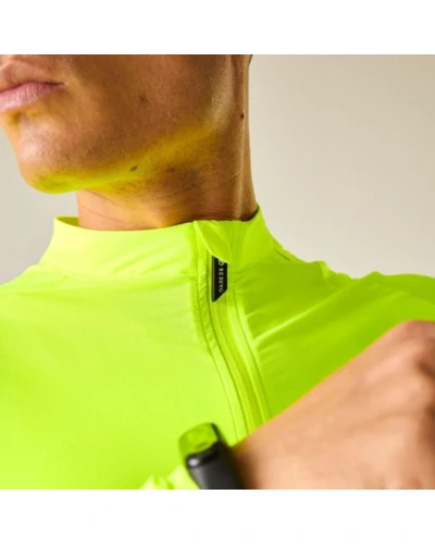 Férfi kerékpáros mez, Prémium férfi hosszú ujjú kerékpáros mez – Ride Fit Pro LIGHTNING, újrahasznosított stretch anyag, UPF 50+, Ez a férfi LIGHTNING rövid ujjú kerékpáros mez Ride Fit Pro szabással készült, amely fokozott aerodinamikát biztosít kerékpáros testhelyzetben, minimalizálva a felesleges anyagtömeget a maximális állóképesség és komfort érdekében. A 88% újrahasznosított poliészter / 12% elasztán alapanyag, valamint a 90% újrahasznosított poliészter / 10% elasztán panelek rugalmas, testkövető illeszkedést biztosítanak. A cool & dry technológia UV-védelemmel, vegyszermentes nedvességelvezetéssel és antibakteriális kezeléssel segít száraz, friss érzetet fenntartani intenzív edzések és hosszabb tekerések során., Főbb jellemzők:, Ride Fit Pro aerodinamikus szabás kerékpáros testhelyzethez optimalizálva, 88% újrahasznosított poliészter / 12% elasztán alapanyag, 90% újrahasznosított poliészter / 10% elasztán panelek, Puha tapintású, könnyû, matt felületû technikai anyag, Cool & dry technológia UV-védelemmel, nedvességelvezetéssel és antibakteriális kezeléssel, UPF 50+ UV-védelem, SeamSmart technológia a szabad mozgásért, Légáteresztő panelek az ujjakon és a hátrészen, Teljes hosszúságú elülső szellőző cipzár autolock húzóval és belső állvédővel, Hosszított, ívelt, részben elasztikus alsó szegély, Csúszásgátlós elasztikus alsó szegély a stabil illeszkedésért, Hátsó, háromrekeszes zsebkialakítás cipzáras biztonsági zsebbel, Fényvisszaverő részletek a fokozott láthatóságért, Ajánlott: Férfi kerékpáros mezként ideális országúti, gravel és teljesítményorientált edzésekhez. Kiváló választás, ha fontos az aerodinamika, a légáteresztés, a stabil illeszkedés és a magas UV-védelem., Fenntarthatóság: A magas arányban újrahasznosított poliészter alapanyag csökkenti a környezeti terhelést, miközben tartós, technikai teljesítményt biztosít rendszeres, intenzív használat mellett is.