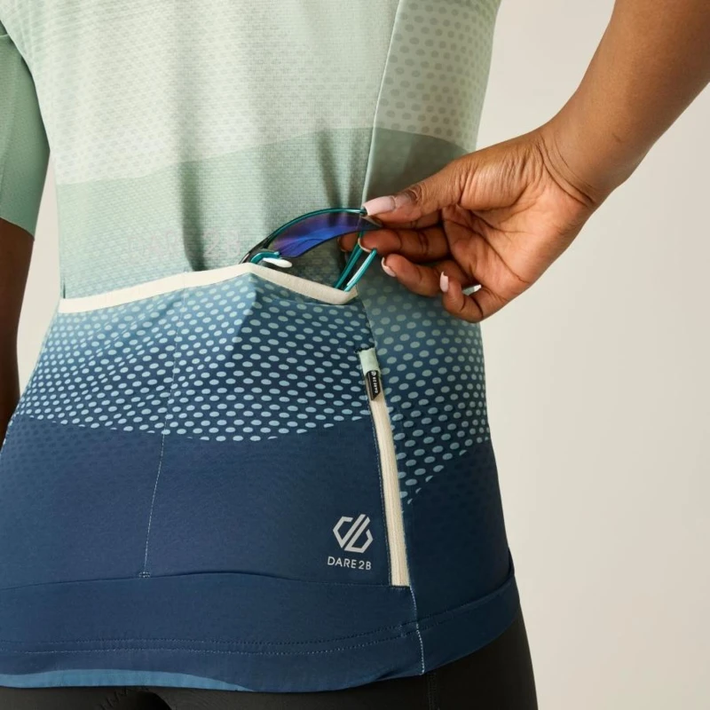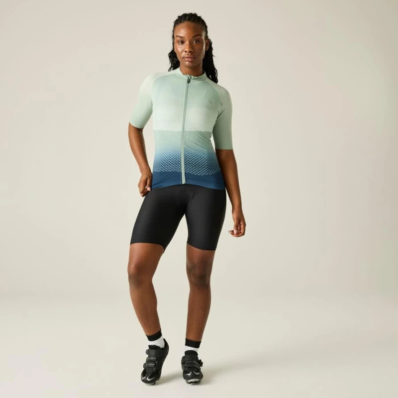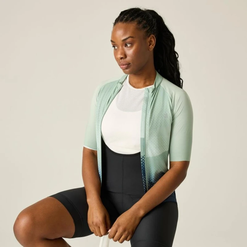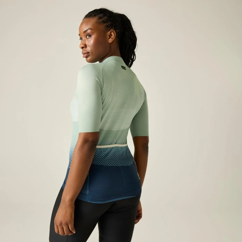 Női kerákpáros mez, Prémium női kerékpáros mez – Ride Fit Pro aerodinamikus szabás, Cool & Dry technológia, UPF 50+ védelemmel, A Ride Fit Pro női kerékpáros mez továbbfejlesztett aerodinamikai kialakítással, kifejezetten kerékpáros testhelyzethez optimalizálva készült a minimális légellenállás és a maximális komfort érdekében. A Cool & Dry technológia UPF 50+ UV-védelemmel, vegyszermentes nedvességelvezető és antibakteriális megoldással segít hûvösen, szárazon és frissen tartani intenzív edzések során. A légáteresztő panelek és az ergonomikus szabás biztosítják a hatékony szellőzést és a szabad mozgást., Főbb jellemzők:, Ride Fit Pro aerodinamikus szabás kerékpáros pozícióhoz optimalizálva, Fényvisszaverő technológia a fokozott láthatóság érdekében, Cool & Dry technológia UPF 50+ UV-védelemmel, Vegyszermentes nedvességelvezető és antibakteriális kezelés, Légáteresztő panelek az ujjakon és a hátrészen az optimális szellőzésért, SeamSmart technológia a szabad mozgásért és a kényelmes illeszkedésért, Szublimációs nyomott grafika a tartós szín- és mintamegőrzésért, Teljes hosszúságú elülső szellőző cipzár autolock húzóval és belső cipzárvédővel, Formázott gallér, Lézervágott ujjvégek a letisztult, kényelmes illeszkedésért, Kétrekeszes hátsó zseb rejtett cipzáras biztonsági zsebbel, Hosszított hátrész enyhén ívelt, részben gumírozott szegéllyel, Csúszásgátló gumírozott alsó szegély a stabil illeszkedésért, UV-védelem (UPF 50+), Ajánlott:, Országúti kerékpározáshoz, gravel túrákhoz és intenzív edzésekhez. Ideális választás teljesítményorientált kerékpáros nők számára, akik könnyû, aerodinamikus és jól szellőző technikai mezt keresnek., Fenntarthatóság:, A tartós technikai kialakítás és a hosszú élettartam hozzájárul a felelős termékhasználathoz, miközben a vegyszermentes technológiai megoldások csökkentik a környezeti terhelést.