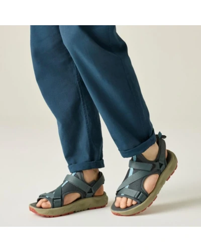 Férfi szandál, Prémium technikai szandál vízbarát kialakítás, könnyû EVA középtalppal, Ez a technikai szandál strapabíró szintetikus és mesh felsőrésszel készült, amely optimális szellőzést és gyors száradást biztosít. A vízbarát kialakítás és a kényelmes, ütéscsillapító talpszerkezet ideálissá teszi aktív nyári használatra, túrázáshoz és vízparti programokhoz., Főbb jellemzők:, Technikai szintetikus és mesh felsőrész a tartósság és légáteresztés érdekében, Tépőzáras, állítható sarokpánt a könnyû fel- és levételért, Neoprén belső rész az extra komfortért, Vízbarát, formázott EVA talpbetét a kényelmes alátámasztásért, XLT hab talpbetét a sarokra érkezéskor jelentkező ütődések csillapítására, EVA középtalp a könnyû és rugalmas lépésérzetért, Könnyû, kopásálló és csúszásmentes gumitalp a megbízható tapadásért, Ajánlott:, Nyári túrázáshoz, vízparti programokhoz, utazáshoz és aktív szabadtéri használatra. Ideális választás azok számára, akik könnyû, stabil és kényelmes technikai szandált keresnek., Fenntarthatóság:, Tartós kialakítása hosszú élettartamot biztosít, amely csökkenti a gyakori cseréből adódó környezeti terhelést.