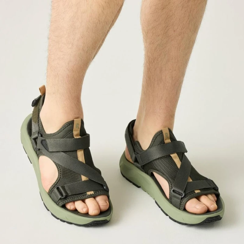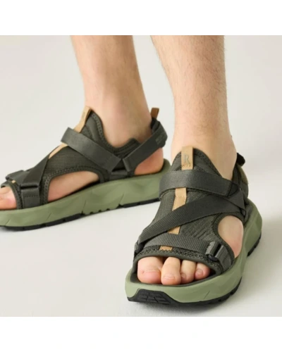 Férfi szandál, Prémium technikai szandál – vízbarát kialakítás, könnyû EVA középtalppal, Ez a technikai szandál strapabíró szintetikus és mesh felsőrésszel készült, amely optimális szellőzést és gyors száradást biztosít. A vízbarát kialakítás és a kényelmes, ütéscsillapító talpszerkezet ideálissá teszi aktív nyári használatra, túrázáshoz és vízparti programokhoz., Főbb jellemzők:, Technikai szintetikus és mesh felsőrész a tartósság és légáteresztés érdekében, Tépőzáras, állítható sarokpánt a könnyû fel- és levételért, Neoprén belső rész az extra komfortért, Vízbarát, formázott EVA talpbetét a kényelmes alátámasztásért, XLT hab talpbetét a sarokra érkezéskor jelentkező ütődések csillapítására, EVA középtalp a könnyû és rugalmas lépésérzetért, Könnyû, kopásálló és csúszásmentes gumitalp a megbízható tapadásért, Ajánlott:, Nyári túrázáshoz, vízparti programokhoz, utazáshoz és aktív szabadtéri használatra. Ideális választás azok számára, akik könnyû, stabil és kényelmes technikai szandált keresnek., Fenntarthatóság:, Tartós kialakítása hosszú élettartamot biztosít, amely csökkenti a gyakori cseréből adódó környezeti terhelést.