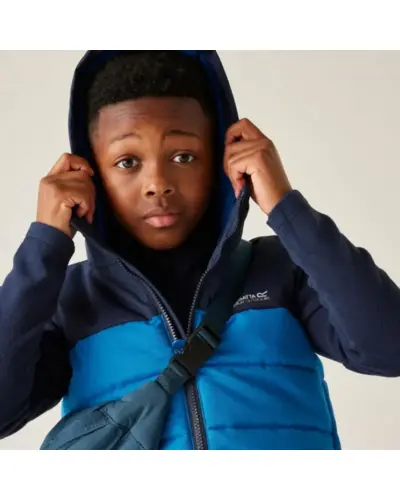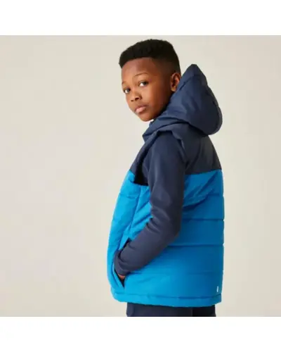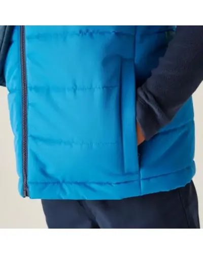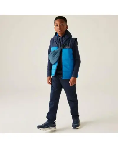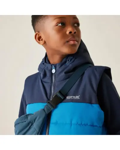 Gyerek steppelt mellény , Gyerek vízlepergető, Warmloft bélelt mellény – meleg réteg hidegebb napokra, Ez a praktikus gyerek mellény könnyû, mégis melegen tart a 200 g/m? Warmloft szintetikus pehelyhatású szigetelésnek köszönhetően. A vízlepergető anyag segít szárazon tartani viselőjét, a rugalmas karöltők pedig kényelmes mozgásszabadságot biztosítanak. A 360°-os fényvisszaverő részletek növelik a láthatóságot, így biztonságosabb a szabadtéri játék vagy kirándulás., Anyag: 100% poliészter, Vízlepergető felületkezelés, Warmloft újrahasznosított szintetikus pehelyhatású szigetelés – 200 g/m?, Rögzített, rugalmas kapucni, Cipzárvédő a kényelmes viseletért, 2 cipzáras kézzseb, 360° fényvisszaverő részletek, Nyomtatott névcímke (8 éves korig), Újrahasznosított anyagból készült – fenntartható választás, Ideális réteges öltözködéshez – iskolába, kiránduláshoz vagy játékhoz a szabadban, amikor plusz melegre van szükség.