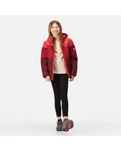 Gyerek bélelt kabát, 100% poliészter anyag, Tartós vízlepergető felület, Nehézsúlyú töltet, Thermoguard szigetelő töltet, fix kapucni, 2 cipzáras alsó zseb, rugalmas anyagból készült szegély a kapucni nyílásán, mandzsettán, Fényvisszaverő díszítés
