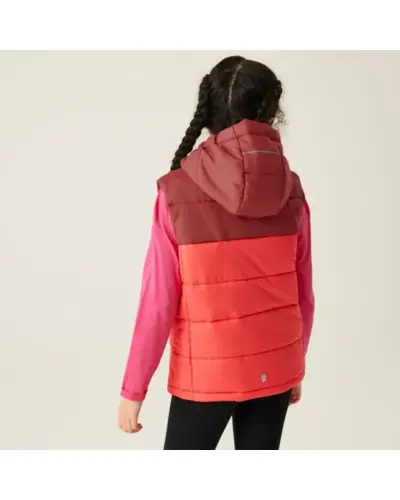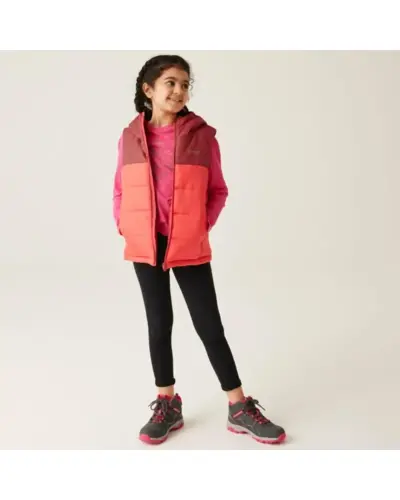 Gyerek mellény, Anyag: Újrahasznosított 100% poliészter szövet, amely környezetbarát megoldást kínál., Vízlepergető felület: Tartós vízlepergető bevonattal ellátva, amely védi a kabátot az esőtől és a nedvességtől., Szigetelés: Nehéz súlyú Thermoguard szigetelés, amely hatékonyan tartja a meleget hideg időben., Kapucni: Beépített kapucni elasztikus szegéllyel, amely jobban illeszkedik és védelmet nyújt a szél és az eső ellen., Cipzárvédő: Cipzárvédő a cipzár mentén, amely kényelmes viseletet biztosít és megakadályozza a hideg levegő bejutását., Zsebek: Két cipzáras kézzseb, amelyek biztonságos tárolási lehetőséget kínálnak., Biztonság: 360 fokos fényvisszaverő csíkok a kabát különböző részein, amelyek javítják a láthatóságot sötétben vagy rossz látási viszonyok között., Nyomtatott névcímke: Nyomtatott névcímke, amely segít a kabát azonosításában, különösen hasznos fiatalabb gyermekek számára (8 éves korig)., Ez a mellény kiváló választás hideg és esős időjárási körülmények között, biztosítva a meleget, kényelmet és védelmet, miközben környezetbarát és fenntartható megoldásokat kínál.