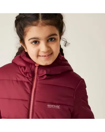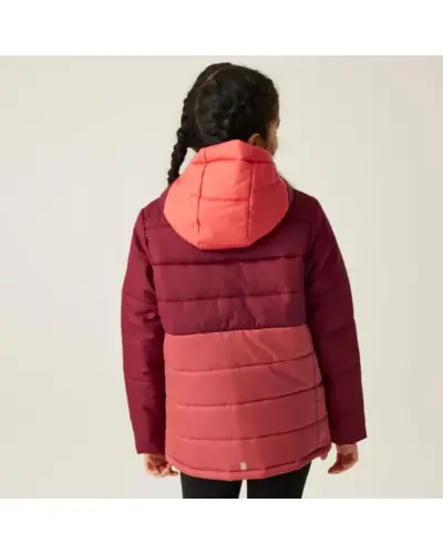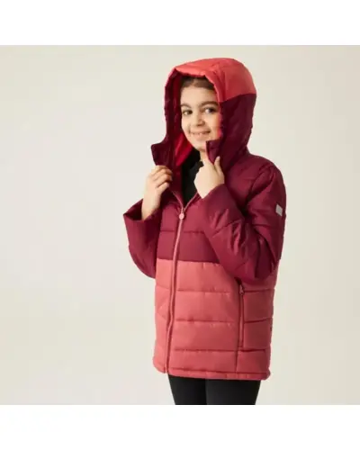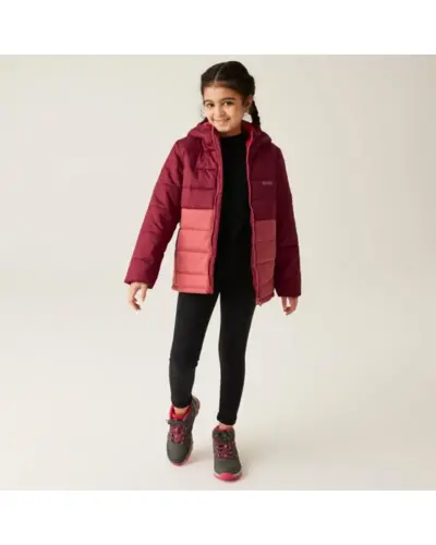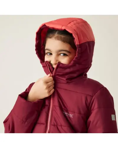 Gyerek bélelt kabát, Anyag: Újrahasznosított 100% poliészter szövet., Vízlepergetés: Tartós vízlepergető bevonattal, amely védi a kabátot a nedvességtől., Szigetelés: Nehéz súlyú Thermoguard szigetelés, amely hatékonyan tartja a meleget hideg időjárás esetén., Kapucni: Beépített kapucni elasztikus szegéllyel a jobb illeszkedés és védelem érdekében., Cipzárvédő: Cipzárvédő a kényelem növelése érdekében., Zsebek: Két cipzáras alsó zseb a biztonságos tárolás érdekében., Mandzsetták: Elasztikus mandzsetták a szorosabb illeszkedésért és a hideg szél kizárásáért., Biztonság: 360 fokos fényvisszaverő csíkok a fokozott láthatóság és biztonság érdekében, különösen gyenge fényviszonyok között., Nyomtatott névcímke: Elérhető nyomtatott névcímkével 8 éves korig, amely segíti a kabát azonosítását., Ez a kabát kiváló választás hideg és nedves időjárási körülmények között, mivel meleget, kényelmet és vízlepergető védelmet biztosít, miközben környezetbarát megoldásokat is kínál.