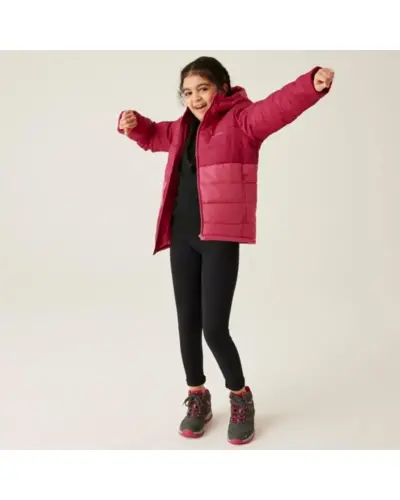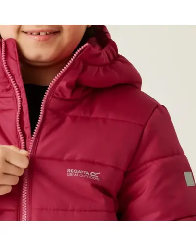 Gyerek bélelt kabát, Anyag: Újrahasznosított 100% poliészter szövet., Vízlepergetés: Tartós vízlepergető bevonattal, amely védi a kabátot a nedvességtől., Szigetelés: Nehéz súlyú Thermoguard szigetelés, amely hatékonyan tartja a meleget hideg időjárás esetén., Kapucni: Beépített kapucni elasztikus szegéllyel a jobb illeszkedés és védelem érdekében., Cipzárvédő: Cipzárvédő a kényelem növelése érdekében., Zsebek: Két cipzáras alsó zseb a biztonságos tárolás érdekében., Mandzsetták: Elasztikus mandzsetták a szorosabb illeszkedésért és a hideg szél kizárásáért., Biztonság: 360 fokos fényvisszaverő csíkok a fokozott láthatóság és biztonság érdekében, különösen gyenge fényviszonyok között., Nyomtatott névcímke: Elérhető nyomtatott névcímkével 8 éves korig, amely segíti a kabát azonosítását., Ez a kabát kiváló választás hideg és nedves időjárási körülmények között, mivel meleget, kényelmet és vízlepergető védelmet biztosít, miközben környezetbarát megoldásokat is kínál.