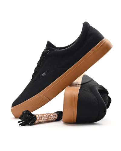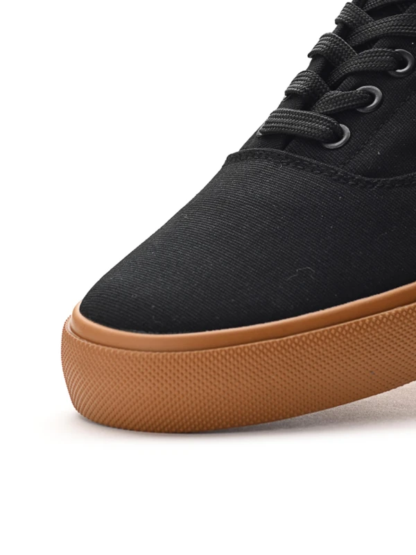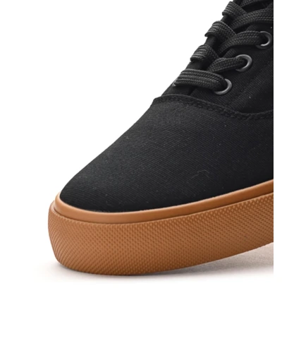 Minimál dizájn, maximális karakter. - A LOOM vászoncipő klasszikus, letisztult sziluettjével és visszafogott, szövött címkés márkajelzésével a deszkás stílus esszenciája. Fekete színéhez eltérő árnyalatú talpakat terveztünk – minimál forma, kimaxolt karakter. A vászon légies viseletet garantál, a vulkanizált gumi talp pedig az extra tartósságért felel. Az igazi egyéniség sokszor az egyszerûségben rejlik. A LOOM örök darab a városi kultúra szerelmeseinek.