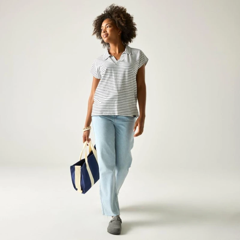 Női póló, Prémium női pamut póló yarn dyed slub jersey, nyitott gallér, 155 g/m?, Ez a női póló 100% pamut, fonalfestett slub jersey anyagból készült, 155 g/m? súlyban. A természetes tapintású, enyhén texturált felület kellemes komfortot és sportosan laza megjelenést biztosít. A nyitott galléros, gombolópántos kialakítás nőies, mégis kényelmes viseletet eredményez a mindennapokban., Főbb jellemzők:, 100% pamut fonalfestett slub jersey anyag, 155 g/m?, Nyitott gallér gombolópánttal, Rövid, sapkaujj kialakítás, Oldalsó hasítékok az alsó szegélynél, Könnyû, kényelmes viselet, Ajánlott: Női pamut pólóként ideális mindennapi viselethez, utazáshoz, kiránduláshoz és nyári szabadidős programokhoz. Kiváló választás meleg időben, amikor fontos a természetes anyagérzet és a komfort., Fenntarthatóság: A természetes pamut alapanyag kellemes viseletet és megfelelő tartósságot biztosít. A minőségi kivitel hozzájárul a hosszabb élettartamhoz, csökkentve a gyakori ruhacsere szükségességét.