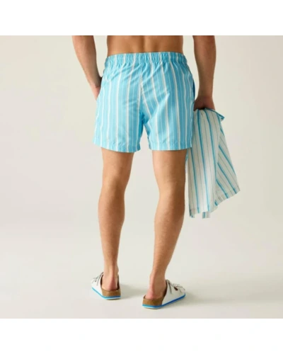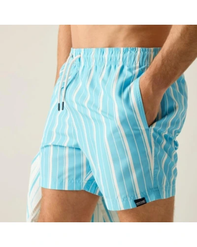 férfi fürdőnadrág, 100% újrahasznosított poliészter mikroszálas anyag, Csíkos, kreppelt hatású 100% újrahasznosított poliészter anyag, Gyorsan száradó anyag, Egyszínû vagy teljes felületén mintás kivitelben, Húzózsinórral állítható derékrész, Két oldal zseb, Egy farzseb, Rövid, hálós bélés, biztonsági zsebbel