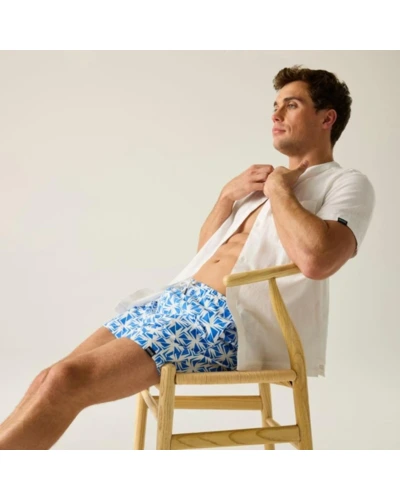 férfi fürdőnadrág, 100% újrahasznosított poliészter mikroszálas anyag, Csíkos, kreppelt hatású 100% újrahasznosított poliészter anyag, Gyorsan száradó anyag, Egyszínû vagy teljes felületén mintás kivitelben, Húzózsinórral állítható derékrész, Két oldal zseb, Egy farzseb, Rövid, hálós bélés, biztonsági zsebbel