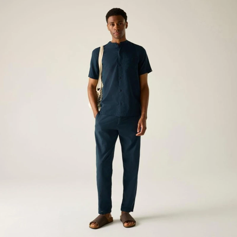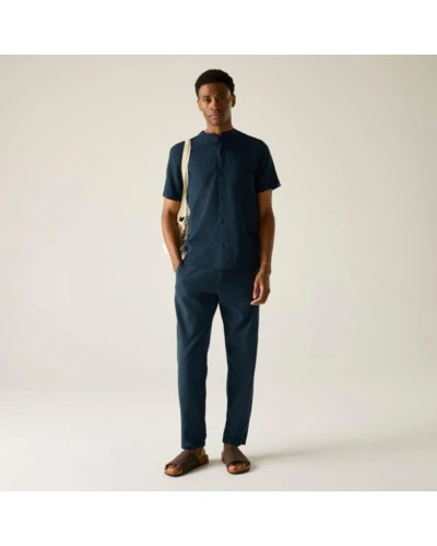 Férfi pamut len ing, Prémium férfi könnyû pamut-len ing – 90 g/m?, grandad gallér, természetes komfort, Ez a férfi könnyû ing 90% pamut / 10% len összetételû, 90 g/m? súlyú anyagból készült. A pamut és len keveréke kiváló légáteresztést, természetes tapintást és nyári komfortot biztosít meleg időjárási körülmények között. A grandad stílusú gombos gallér modern, letisztult megjelenést kölcsönöz, míg az előrehelyezett vállvarrás és a hátrész vállpánt részlet fokozza az illeszkedést és a kényelmet., Főbb jellemzők:, 90% pamut / 10% len könnyû anyag, 90 g/m?, Grandad stílusú gombos gallér, Előrehelyezett vállvarrás a kényelmesebb illeszkedésért, Hátsó vállpánt részlet, Mellrátett zseb, Oldalsó hasítékok, Ajánlott: Férfi nyári ingként ideális mindennapi viselethez, utazáshoz, nyaraláshoz és könnyû szabadtéri programokhoz. Kiváló választás meleg időben, amikor fontos a könnyû súly, a természetes anyagérzet és a letisztult stílus., Fenntarthatóság: A magas természetes száltartalmú anyag kellemes viseletet és megfelelő tartósságot biztosít. A minőségi kivitel hosszabb élettartamot eredményez, csökkentve a gyakori ruhacsere szükségességét.