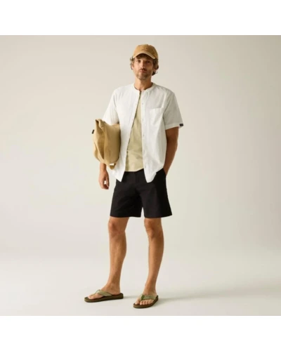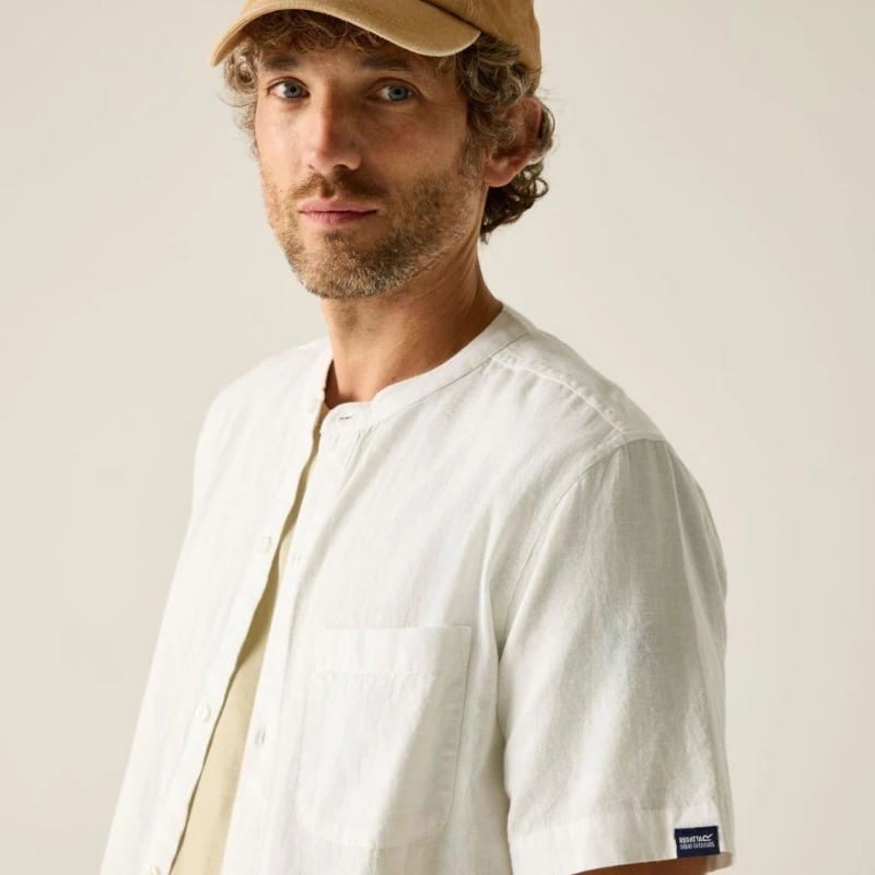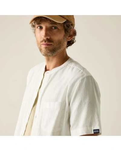 Férfi pamut len ing, Prémium férfi könnyû pamut-len ing 90 g/m?, grandad gallér, természetes komfort, Ez a férfi könnyû ing 90% pamut / 10% len összetételû, 90 g/m? súlyú anyagból készült. A pamut és len keveréke kiváló légáteresztést, természetes tapintást és nyári komfortot biztosít meleg időjárási körülmények között. A grandad stílusú gombos gallér modern, letisztult megjelenést kölcsönöz, míg az előrehelyezett vállvarrás és a hátrész vállpánt részlet fokozza az illeszkedést és a kényelmet., Főbb jellemzők:, 90% pamut / 10% len könnyû anyag, 90 g/m?, Grandad stílusú gombos gallér, Előrehelyezett vállvarrás a kényelmesebb illeszkedésért, Hátsó vállpánt részlet, Mellrátett zseb, Oldalsó hasítékok, Ajánlott: Férfi nyári ingként ideális mindennapi viselethez, utazáshoz, nyaraláshoz és könnyû szabadtéri programokhoz. Kiváló választás meleg időben, amikor fontos a könnyû súly, a természetes anyagérzet és a letisztult stílus., Fenntarthatóság: A magas természetes száltartalmú anyag kellemes viseletet és megfelelő tartósságot biztosít. A minőségi kivitel hosszabb élettartamot eredményez, csökkentve a gyakori ruhacsere szükségességét.