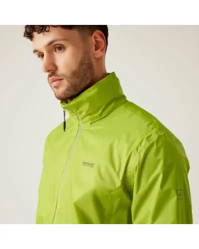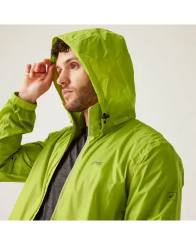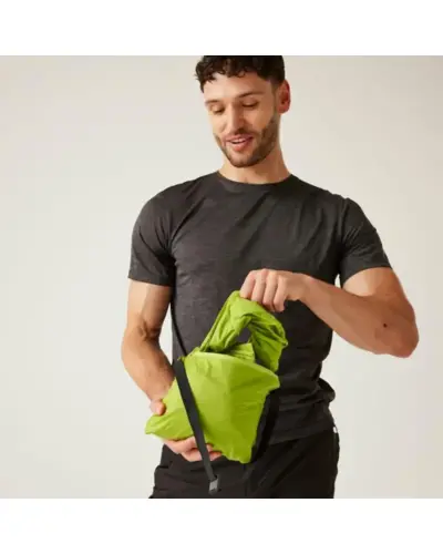 férfi esőkabát 5.000 mm, vízálló légáteresztő Isolite 5000 könnyû poliamid anyag, tartós víztaszító felület, hegesztett varrások, hálós bélés, gallérba rejtett állítható kapucni, fényvisszaverő csík, 2 cipzáras alsó zseb, állítható zsinóros szegély, Elcsomagolható az övtáskává alakított bal zsebbe
