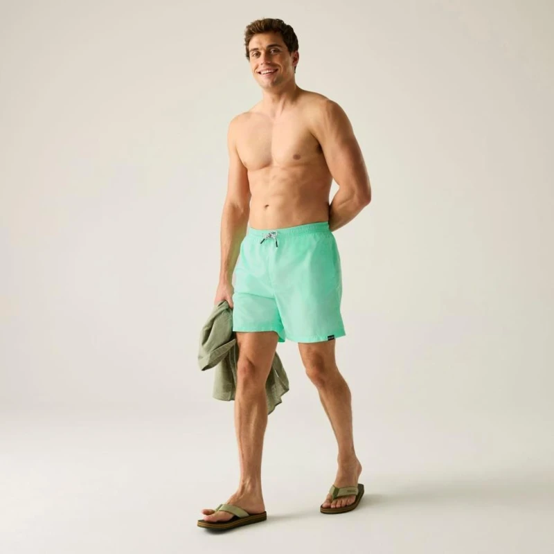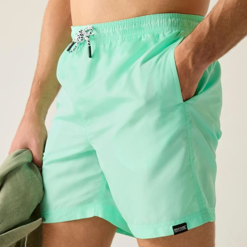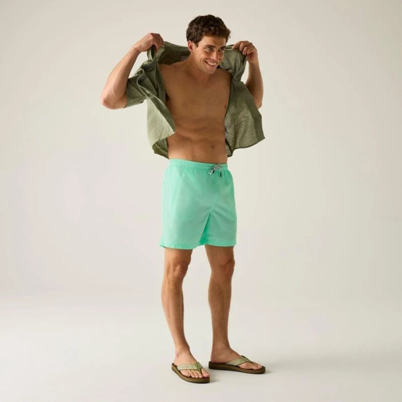 Férfi fürdőnadrág, Újrahasznosított 100% poliészter mikroszálas anyag, Gyorsan száradó , Állítható húzózsinór derékrész, 2 oldalzseb, 1 hátsó zseb, Packaway kialakítás – saját hátsó zsebébe csomagolható, Hálós rövid bélés biztonsági zsebbel, UV védelem (UPF)