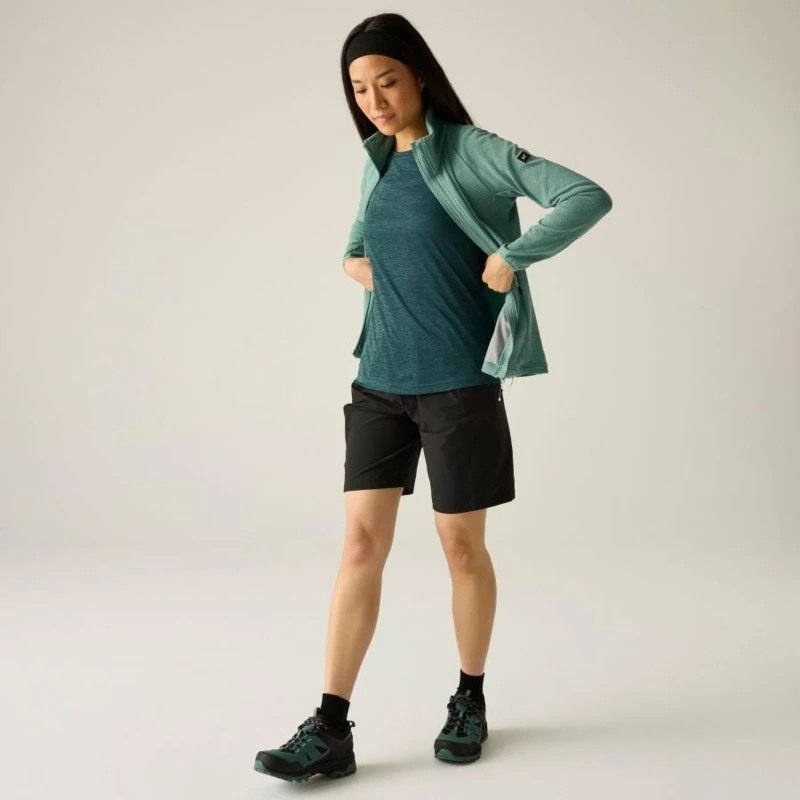 Női polár pulóver, Anyag:, 214gsm újrahasznosított 96% poliészter / 4% elasztán marl stretch szövet terry béléssel, Tulajdonságok:, Reach Technology – hónaljbetét a maximális mozgásszabadságért és akadálytalan karhasználatért, 2 cipzáras alsó zseb, Rugalmas szegély a mandzsettákon, Újrahasznosított tartalommal készült – fenntartható választás, Ideális választás aktív életmódhoz és sportos viselethez.