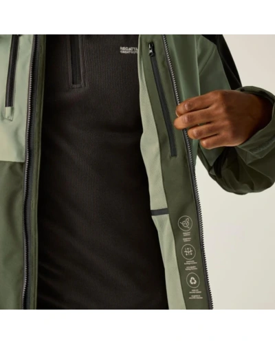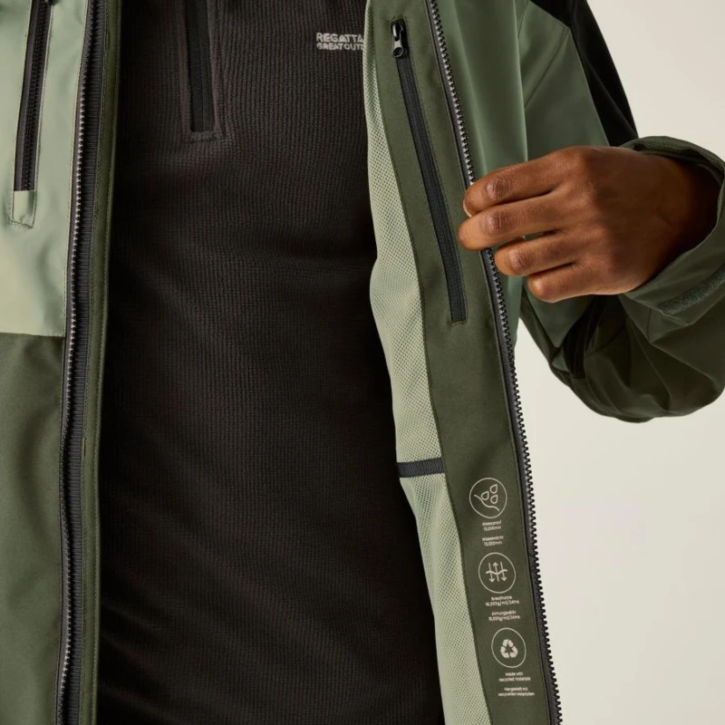 Férfi esőkabát 15000 mm vízálló, Anyag:, Isotex 15000 vízálló és légáteresztő stretch szövet 165 g/m?, újrahasznosított 100% poliészter, Tulajdonságok:, Újrahasznosított anyagokból készült fenntartható és környezettudatos választás, Lélegző kialakítás 15,000 g/m?/24 óra légáteresztő képesség, Tartós vízlepergető bevonat extra védelem a nedvesség ellen, Teljesen vízálló, ragasztott varrásokkal maximális vízállóság, Hálós bélés jobb szellőzés és komfort, Beépített technikai kapucni állítórendszerrel személyre szabható illeszkedés és extra védelem, Előformázott ujjak fokozott mozgásszabadság és kényelem, 2 cipzáras alsó zseb és 2 cipzáras mellzseb biztonságos és praktikus tárolási lehetőség, Belső cipzáras biztonsági zseb értékek védett tárolása, Állítható mandzsetta testreszabható illeszkedés, Állítható rugalmas zsinórral ellátott szegély fokozott komfort és szélvédelem, Ideális választás túrázáshoz, szabadtéri sportokhoz és változékony időjárási körülményekhez.