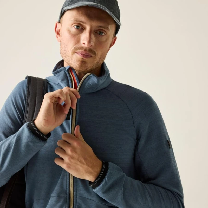 Férfi polár felső, Prémium férfi soft-touch felső – melange anyag, rugalmas komfort, 170 g/m?, Ez a férfi szabadidő felső 34% pamut / 34% viszkóz / 24% poliészter / 8% elasztán összetételû, 170 g/m? súlyú soft-touch melange anyagból készült. A puha tapintású, rugalmas szövet kényelmes viseletet és modern megjelenést biztosít mindennapi használat során. A részletgazdag kidolgozás és a praktikus cipzáras zsebek funkcionalitást adnak a sportosan letisztult dizájnhoz., Főbb jellemzők:, 34% pamut / 34% viszkóz / 24% poliészter / 8% elasztán soft-touch melange anyag, 170 g/m?, Grosgrain szalag részlet a gallérnál, 2 alsó cipzáras zseb, Rugalmas szegély a mandzsettán és az alsó részen, Ajánlott: Férfi szabadidő felsőként ideális mindennapi viselethez, utazáshoz, könnyû szabadtéri programokhoz és aktív hétköznapokra. Kiváló választás, ha fontos a puha tapintás, a rugalmasság és a modern megjelenés., Fenntarthatóság: A tartós kevertszálas anyag hosszú élettartamot biztosít, csökkentve a gyakori ruhacsere szükségességét. A minőségi kivitel több szezonon át megbízható viseletet nyújt.