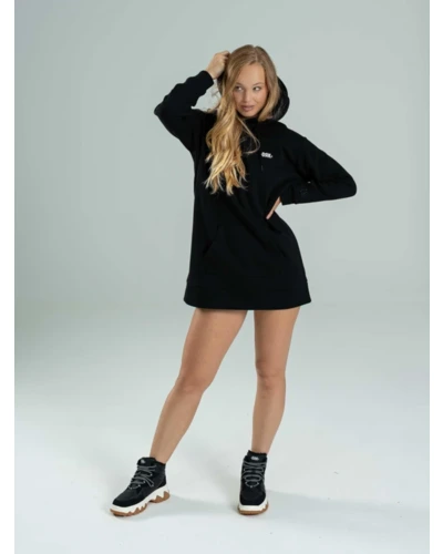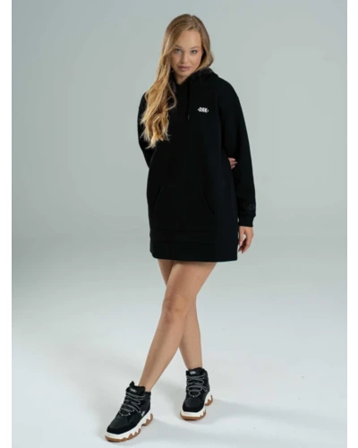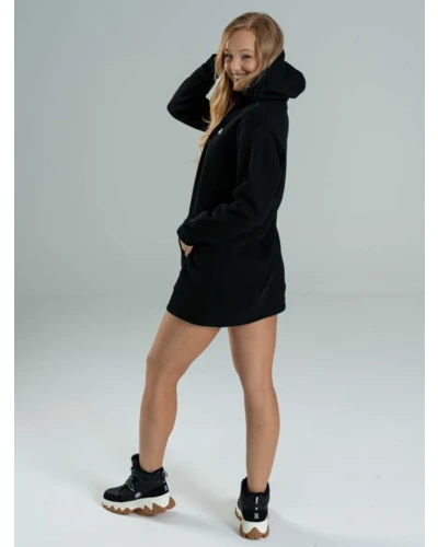 A MARLY hosszított fazonú, brushed fleece anyagból készült kapucnis ruha tökéletes választás a lezser, mégis stílusos hétköznapokra. Puha, meleg tapintású anyaga kellemes viseletet nyújt, míg a jobb ujjon található finom hímzés és a bal mellrészen elhelyezett visszafogott print diszkrét, de karakteres részleteket adnak a megjelenéshez. Egyszerre kényelmes és trendi darab a hidegebb napokra. A modell 174 cm magas és S-es méretet visel.