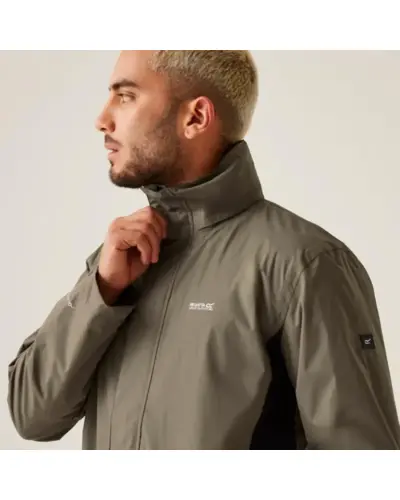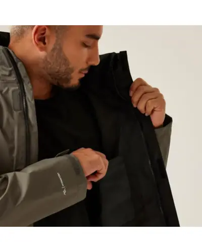 Férfi bélelt vízálló kabát, Vízállo Hydrafort polieszter anyag, Tartós és víztaszító felület, Ragasztott varrások, Hálós bélés, Rejtett állítható kapucni, Állítható mandzsetta, 2 cipzáras alsó zseb, belső zseb, Állítható, húzózsinóros szegély