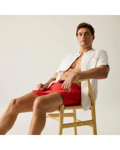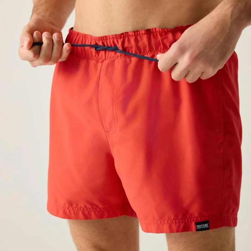 Férfi fürdő short, 100% poliészter taslan anyag, Gyorsan száradó anyag, Húzózsinórral állítható derékrész, Két oldal zseb, Egy farzseb, Rövid, hálós bélés, biztonsági zsebbel