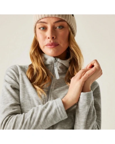 Női polár felső, Női pehelykönnyû, melírozott polár felső letisztult stílus, mindennapi kényelem, Ez a melírozott, pehelykönnyû polár felső (170 g/m?) ideális választás aktív napokra és kényelmes hétköznapi viselethez. A raglánujjak szabad mozgást biztosítanak, míg a praktikus alsó zsebek helyet kínálnak a legfontosabb apróságoknak., Anyag: 100% poliészter, melírozott polár 170 g/m?, Raglánujjas kialakítás a mozgásszabadságért, 2 alsó zseb, Újrahasznosított anyagból készült környezettudatos választás, Ajánlott: réteges öltözködéshez, kiránduláshoz, sportos és hétköznapi viselethez, Könnyû, kényelmes, fenntartható tökéletes társ a mindennapokban
