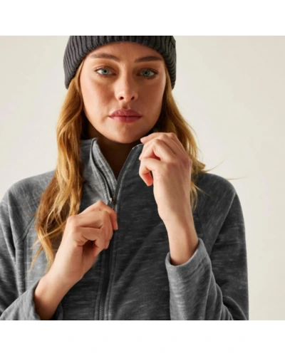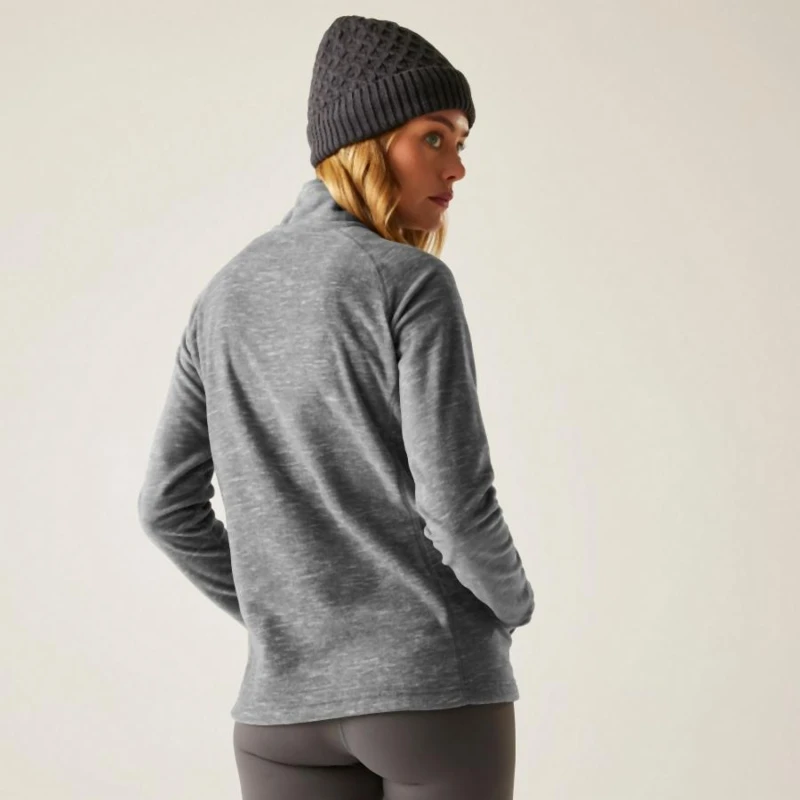 Női polár felső, Női pehelykönnyû, melírozott polár felső letisztult stílus, mindennapi kényelem, Ez a melírozott, pehelykönnyû polár felső (170 g/m?) ideális választás aktív napokra és kényelmes hétköznapi viselethez. A raglánujjak szabad mozgást biztosítanak, míg a praktikus alsó zsebek helyet kínálnak a legfontosabb apróságoknak., Anyag: 100% poliészter, melírozott polár 170 g/m?, Raglánujjas kialakítás a mozgásszabadságért, 2 alsó zseb, Újrahasznosított anyagból készült környezettudatos választás, Ajánlott: réteges öltözködéshez, kiránduláshoz, sportos és hétköznapi viselethez, Könnyû, kényelmes, fenntartható tökéletes társ a mindennapokban