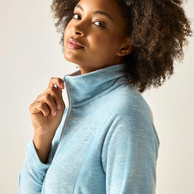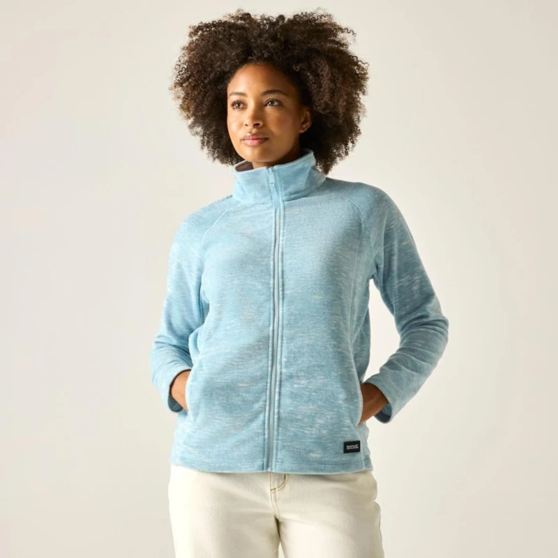 Női polár felső, Női pehelykönnyû, melírozott polár felső – letisztult stílus, mindennapi kényelem, Ez a melírozott, pehelykönnyû polár felső (170 g/m?) ideális választás aktív napokra és kényelmes hétköznapi viselethez. A raglánujjak szabad mozgást biztosítanak, míg a praktikus alsó zsebek helyet kínálnak a legfontosabb apróságoknak., Anyag: 100% poliészter, melírozott polár – 170 g/m?, Raglánujjas kialakítás a mozgásszabadságért, 2 alsó zseb, Újrahasznosított anyagból készült – környezettudatos választás, Ajánlott: réteges öltözködéshez, kiránduláshoz, sportos és hétköznapi viselethez, Könnyû, kényelmes, fenntartható – tökéletes társ a mindennapokban
