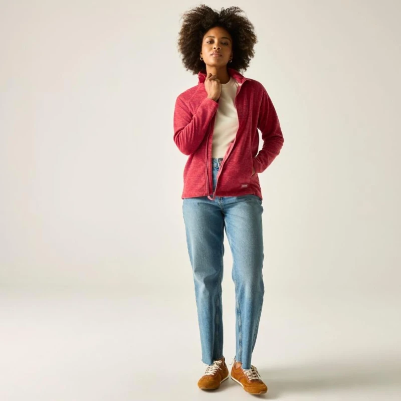 Női polár felső, Női pehelykönnyû, melírozott polár felső letisztult stílus, mindennapi kényelem, Ez a melírozott, pehelykönnyû polár felső (170 g/m?) ideális választás aktív napokra és kényelmes hétköznapi viselethez. A raglánujjak szabad mozgást biztosítanak, míg a praktikus alsó zsebek helyet kínálnak a legfontosabb apróságoknak., Anyag: 100% poliészter, melírozott polár 170 g/m?, Raglánujjas kialakítás a mozgásszabadságért, 2 alsó zseb, Újrahasznosított anyagból készült környezettudatos választás, Ajánlott: réteges öltözködéshez, kiránduláshoz, sportos és hétköznapi viselethez, Könnyû, kényelmes, fenntartható tökéletes társ a mindennapokban