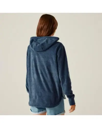 Női polár pulóver, 170 gsm sûrûségû, 100% újrahasznosított poliészter, selymes hátoldalú márványos anyag, 170 gsm sûrûségû újrahasznosított poliészter, selymes hátoldalú márványos mintás anyag, fix kapucni, Pamut húzózsinór a kapucni állításához, Ívelt alsó szegély, Ez a könnyû felső ideális választás a mindennapi kényelemhez. A 100% újrahasznosított poliészter anyagból készült, selymes hátoldalú márványos anyag puha tapintású és kényelmes viseletet biztosít. A beépített kapucni pamut húzózsinórral állítható, ami extra funkcionalitást és stílust biztosít. Az ívelt alsó szegély modern és divatos megjelenést kölcsönöz a felsőnek. Ez a ruhadarab nemcsak stílusos, hanem fenntartható is, mivel teljes egészében újrahasznosított anyagokból készült, így környezettudatos választás.