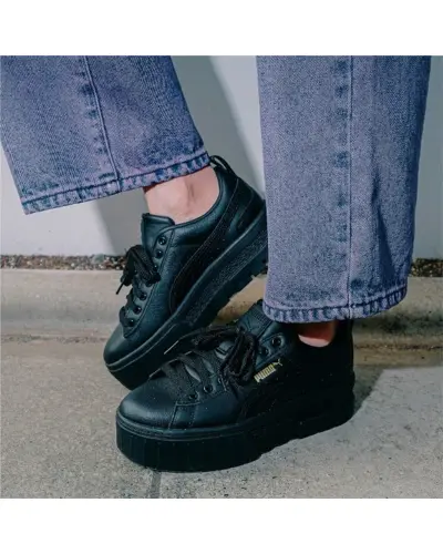 Get ready to find your style in Mayze. We made this one for the hype girls, the street enthusiasts, the trend mavens. This stand-out silhouette takes design inspiration straight from the streets, with a stacked sole and contrasting rubber tooling for an edgy, layered look. This execution features a full leather upper with a leather formstripe.